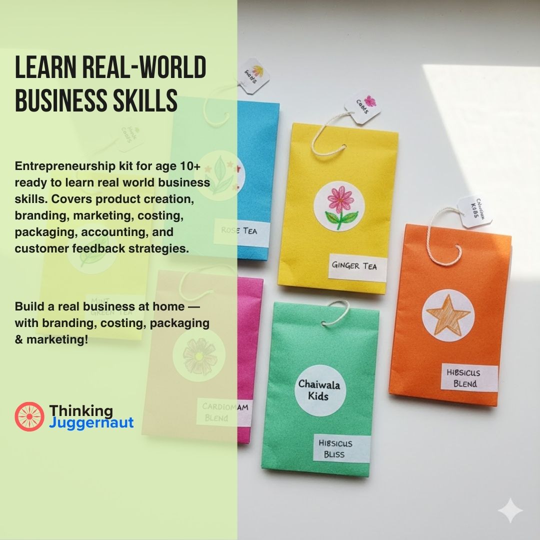 The Thinking Juggernaut Entrepreneurship Kit is designed for young thinkers aged 10 and up.